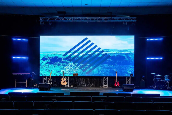 The introduction of LED video walls makes this much easier. Churches only need to prepare the relevant images and text in advance, and all content can be dynamically displayed on the LED screen, eliminating the need for physical stage sets.