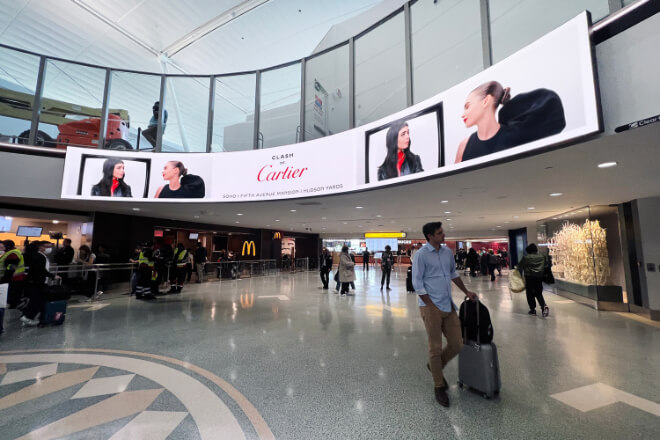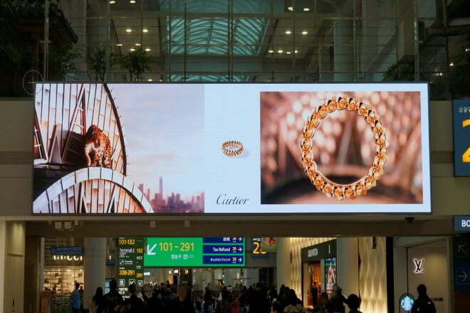 For example, imagine you’re dragging your luggage into the terminal, and you look up to see a massive LED screen playing a brand’s advertisement—clean visuals, sophisticated pacing, and strong lighting.
