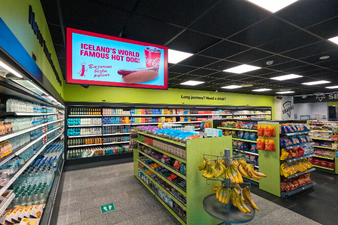 Ideally, the screen should be installed along frequently used customer routes at eye level. This way, customers can easily see product information no matter where they are.