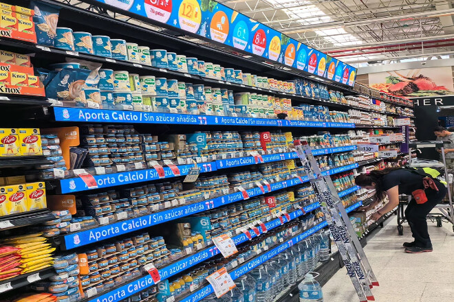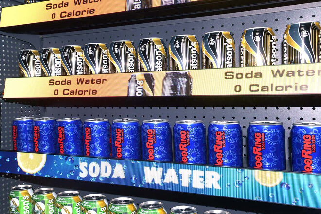 As customers browse the shelves, the rotating content on the screens can guide their attention to specific products.