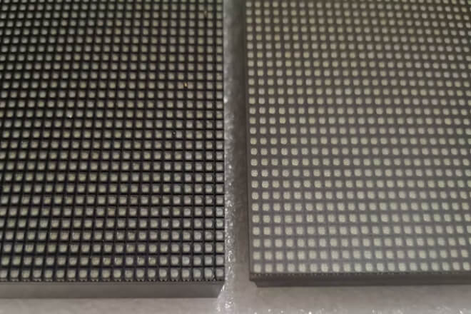 In SMD-packaged screens, if the LED chips are uneven, the image may show color differences or uneven brightness.