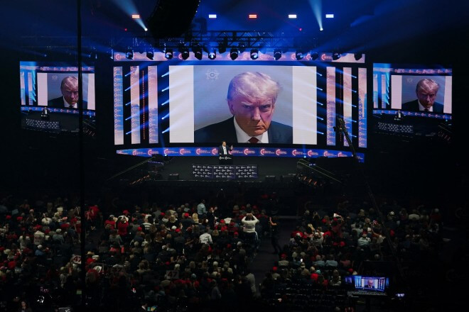 Large outdoor LED screens are often used as the “main stage” at rallies, especially at large election events.