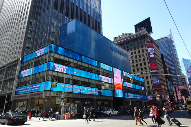 LED screens are also common on bank facades, displaying scrolling information about financial products, credit card offers, or financial tips.