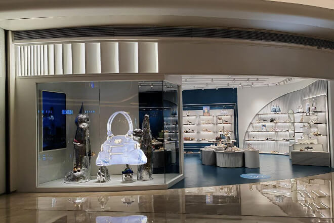 Visitors can walk around the products, seeing the 3D effect from different angles, which is much more interesting than ordinary display cases.