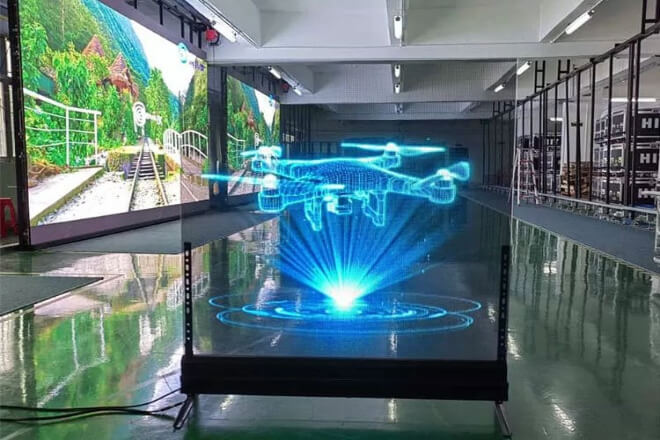 Simply put, an LED holographic display makes the image “float” in the air, creating a 3D effect without the need for glasses.