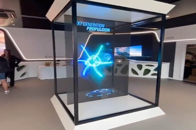 Holographic displays can make products appear to float in the air or display 3D animation effects.