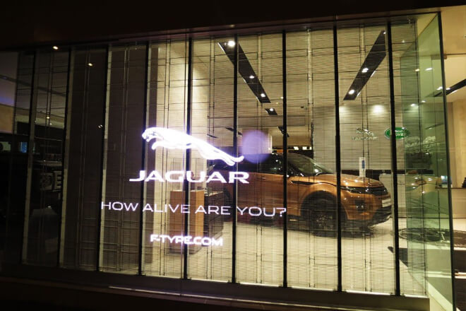 Due to their high light transmittance, the screens can be placed above or next to the display window, not only maintaining a clear view of the vehicles but also enhancing the brand’s modern and technological presence.