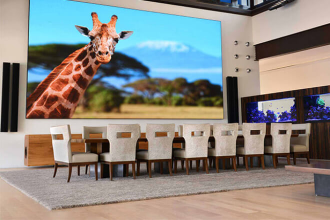 ショッピングモール showrooms, conference rooms: Audiences are close to the screen, small pitch screens (P1.5-P3) are most suitable.