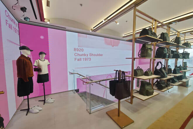 For example, slowly changing brand videos at the entrance and flowing art on the background wall add depth and a sense of sophistication to the store.