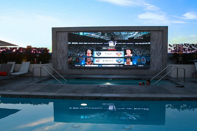 This is particularly true in the pool area, where the size and placement of the LED screen are crucial.