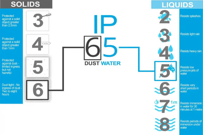 For example, IP65, IP66, and IP67 differ more in their waterproof testing methods than in which one is necessarily more durable.