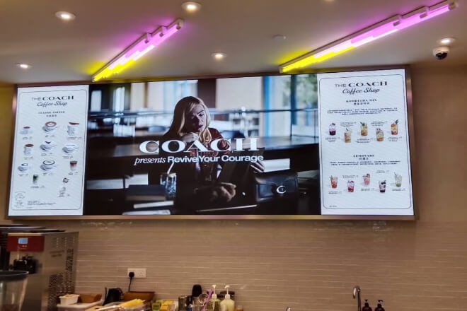 Small LED screens can be mounted on walls, embedded above the checkout counter, or even made into a narrow strip, without taking up space, yet still continuously displaying information.
